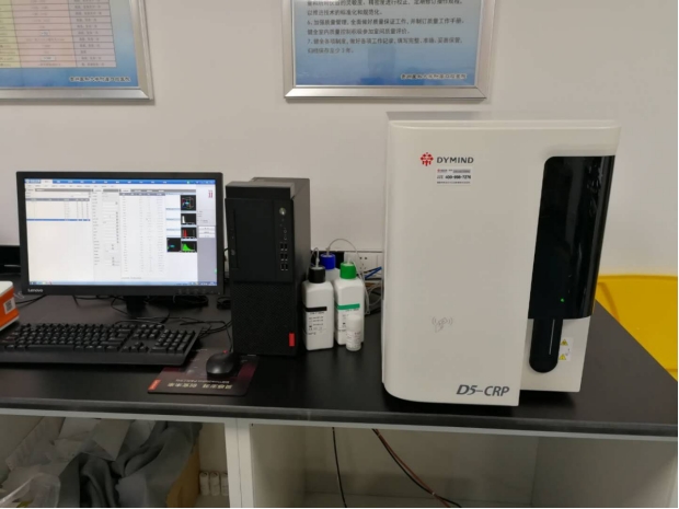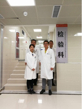 检验科配备有日立全自动生化分析仪、西斯美康凝血分析仪、长光华医全自动化学发光分析仪、帝迈全自动血球分析仪、酶标仪和洗板机、优利特尿液自动分析仪等检验设备。目前能完成的检测项目包括:血常规、大小便常规、凝血功能、肝肾功能、电解质、血糖、糖化血红蛋白、乙肝两对半、丙肝、艾滋、梅毒、院感细菌培养、输血常规、交叉配血等。