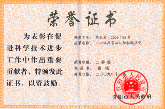 2009年贵阳市科学技术奖奖状