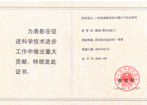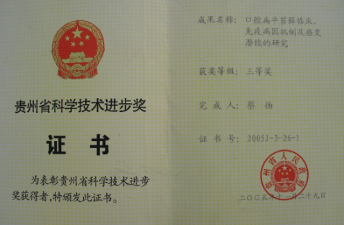 27.蔡扬,“Th1/Th2平衡与口腔扁平苔藓”,贵州省优秀科技教育人才省长资金(2009-2011)黔省专合字(2009)38号, 6.0万元。