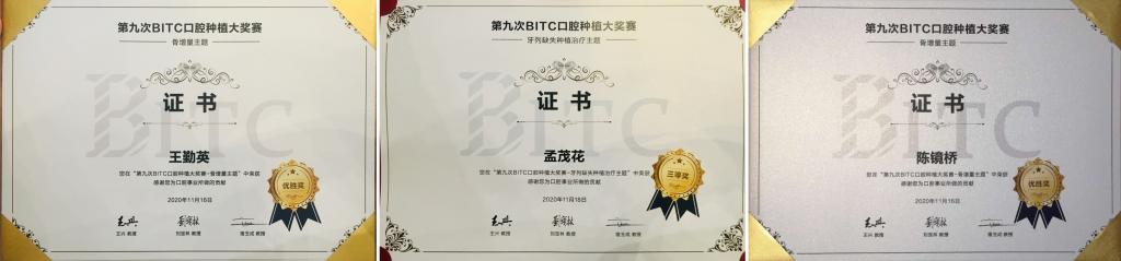 三位研究生经过认真准备和努力,在比赛中从容展示,最终孟茂花的参赛病例“数字化腓骨肌皮瓣重建右侧下颌骨缺损后种植覆盖义齿修复”荣获牙列缺失种植治疗主题赛区三等奖,王勤英的参赛病例“右上中切牙L-shape技术骨增量及隧道法软组织增量后种植修复”和陈镜桥的参赛病例“右上中切牙mucograft位点保存后延期种植修复”获骨增量主题赛区优胜奖。