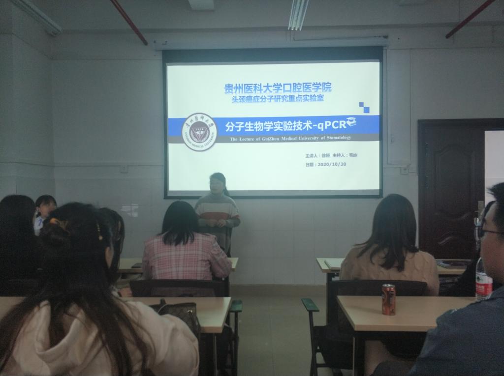 讲座上,徐娅以图文和动画结合的形式直观地给同学们讲解了荧光定量PCR原理、荧光定量PCR的实验操作步骤,以及实验得出结果后的数据处理步骤,并以实验中具体得出的数据为例,详细介绍了实验结果的演算过程,给即将开展实验和已经在研的研究生同学们上了一堂实用有趣的科研讲座,为口院的研究生同学们开展基础的科研实验打下良好的基础。