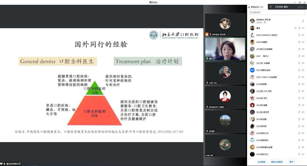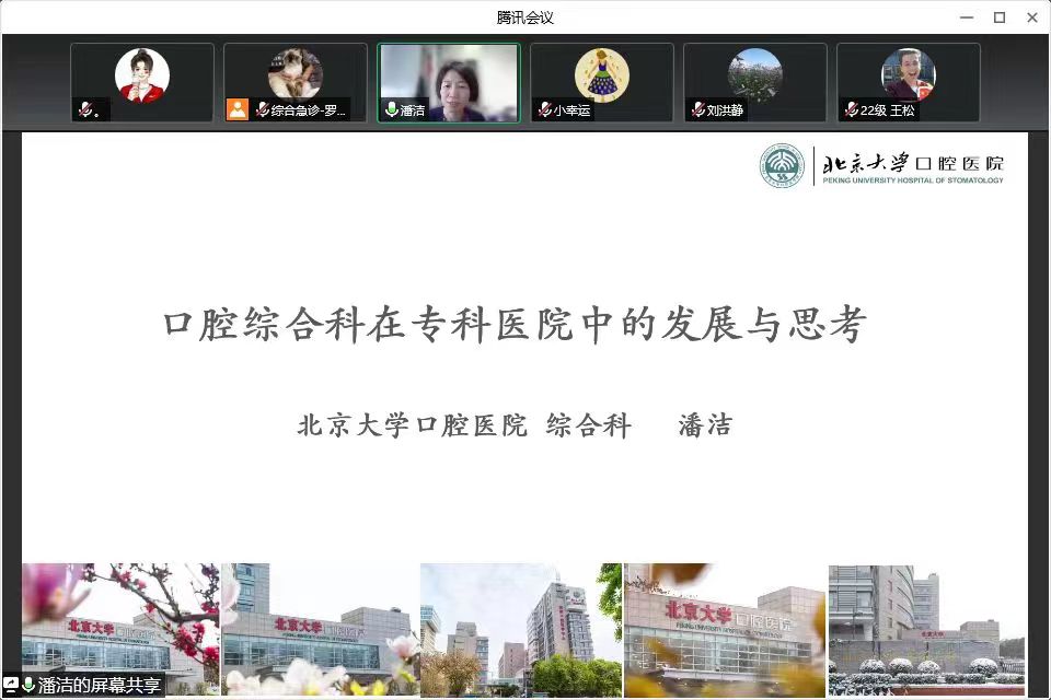 此次会议特邀请北京大学口腔医院综合科主任潘洁教授开展专题讲座,公司教职医护、研究生、规培生共150余人参会学习,口腔综合急诊科主任刘洪静主持会议。