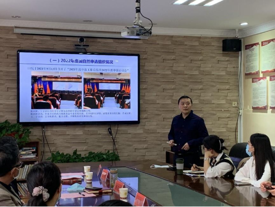 会上,研究生科研管理科科长廖健汇报了williamhill2022年国家自然科学基金申请及资助情况,并对2023年度申报工作进行安排部署,表示2022年口院立项获得新突破,将全力以赴力在2023年取得更高收获。