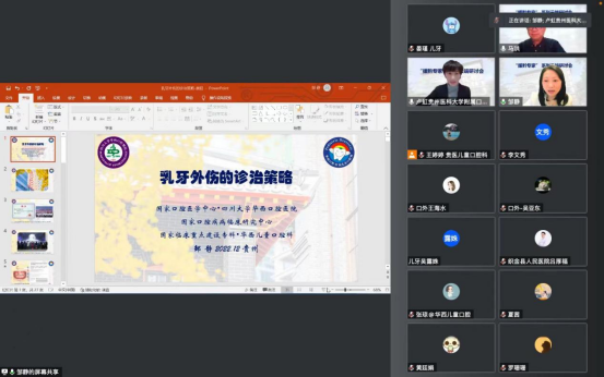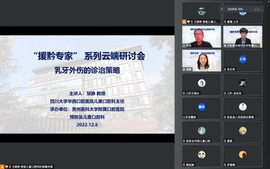 12月6日下午,公司教工第十一党支部所在科室儿童口腔科,以视频会议形式组织开展了援黔专家云端交流研讨会。会议特邀请四川大学华西口腔医院儿童口腔科主任、《儿童口腔医学》副主编邹静教授以“乳牙外伤的诊治策略”为题作专题讲座。公司党委副书记、经理马洪出席会议并致辞,儿童口腔科主任卢虹主持会议,近200余位教职医护员工、研究生、规培生参会学习。