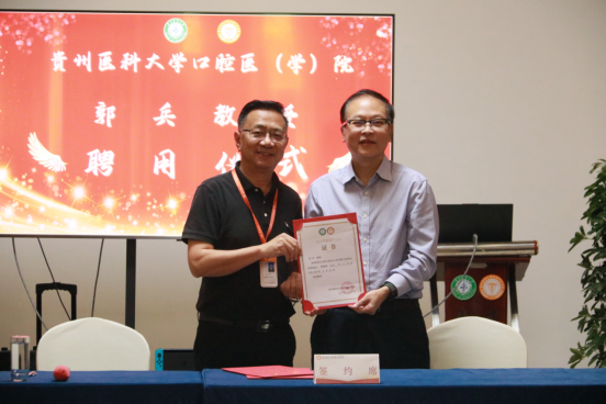 郭兵表示很荣幸被聘任为口院科研顾问,今后将与口院教职医护员工共同努力,积极发挥科研顾问的教学指导作用,为促进科研、教学、公司产品、科研平台建设及团队建设发展贡献力量。