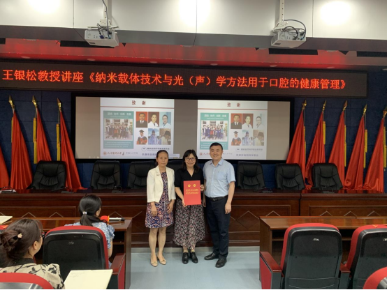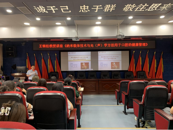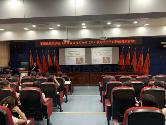 7月17日,天津医科大学药公司药剂学系主任、口腔医(学)院研究所副所长王银松应邀到公司作专题学术讲座,讲座主题为“纳米载体技术与光(声)学方法用于口腔的健康管理”,由研究生科研管理科科长廖健主持,教职医护、研究生、规培生共百余人参会学习。