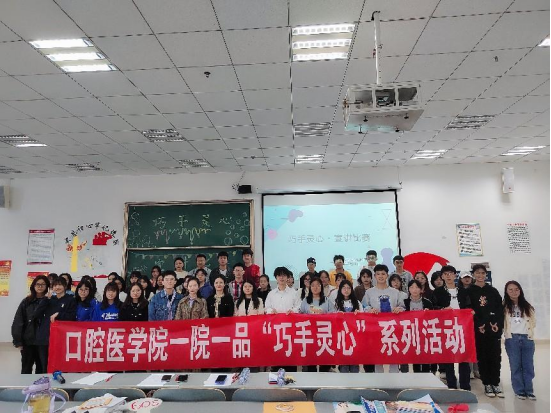 为进一步增强校园文化氛围,提高员工动手实践能力,提高员工综合素质,公司于5月18日在南校区思来社区与7506教室举行了“巧手灵心”系列活动。本次活动以“爱牙护齿,言传躬行”为主题,以科普宣讲为主要内容,员工管理科科长张婷、公司团委副书记刘逸洲、医院团委副书记蒋韵娴及口2020、2021级辅导员汪继蓉担任评委,2020级全体员工参加比赛。