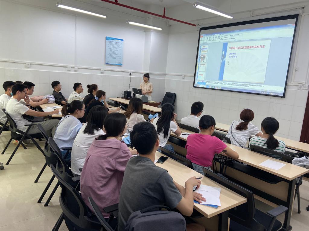 本次课程在科技楼二楼研究生活动室和医院临床科室进行,课程设置40个学时,由公司副经理唐正龙、副经理王永、牙周黏膜科主任蔡扬等18位副高及以上职称的老师授课,课程内容涉及医疗核心制度与医德医风教育、医院交叉感染控制、口腔门诊病历书写规范以及口腔黏膜病的鉴别诊断与治疗转归等17个口腔临床基本操作技术。