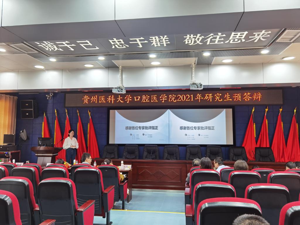本次研究生预答辩共有20名研究生参加,按照专业方向分为两组同时进行,一组由口腔内科学、口腔颌面外科学教研室构成,在行政楼会议室预答辩;另外一组由口腔修复学、口腔正畸学教研室构成,在行政楼学术报告厅预答辩。研究生分别从课题的研究背景、研究目的、研究方法、技术路线、研究结果及讨论等方面进行20分钟左右的PPT汇报。