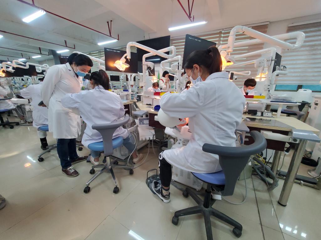 选拔赛分为“牙体雕刻、全瓷冠牙体制备(牙位21)、二类洞形态制备(牙位36)、牙周探诊、颌面部绷带包扎”五站进行选拔评比,全程由实验室教师刘玙颖作为器械使用指导老师。选拔赛特邀请院口腔解剖生理学教研室主任贾莹担任“牙体雕刻”赛站评委、口腔修复种植科谭雯珈担任“全瓷冠牙体制备”赛站评委、牙体牙髓科袁媛园担任“二类洞形态制备”赛站评委、牙周黏膜科刘怡担任“牙周探诊”赛站评委、口腔颌面外科康剑勇担任“颌面部绷带包扎”赛站评委。