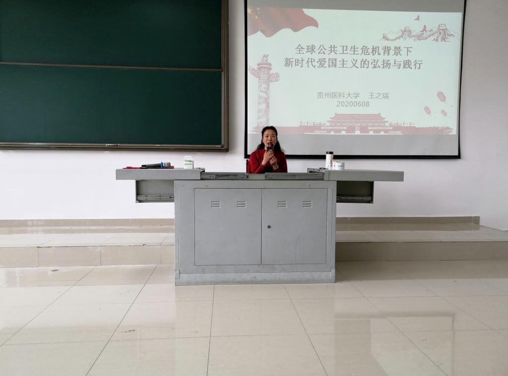 6月8日,williamhill官网党委委员、纪委书记王之瑞来到九思楼4406教室,就全球公共卫生危机背景下新时代爱国主义的弘扬与践行,给2019级口腔甲班的同学们上了一堂生动有趣的形势与政策课。