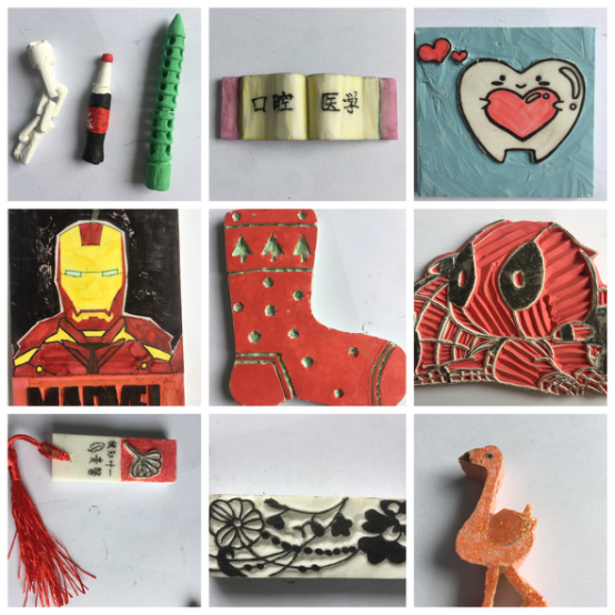 此次比赛,共计收到2017级、2018级同学们作品389份。比赛分为两组展开,即雕刻粉笔和雕刻橡皮两组。同学们自由选择其中之一进行作品雕刻。