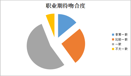 职业期待吻合度:非常一致:14%,比较一致:26%,一致:54%,不太一致:6%。