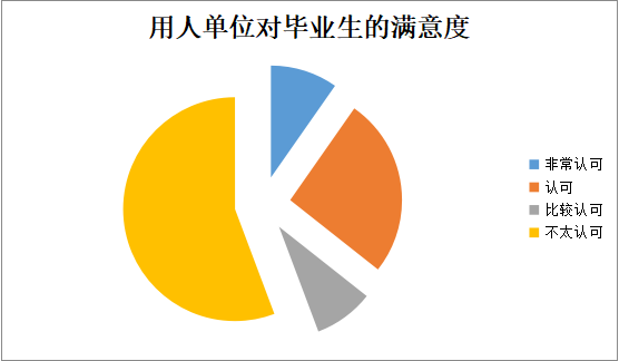 用人单位对毕业生的满意度:非常认可:19.88%,认可:56.55%,比较认可:21.22%,不太认可:2.35%。