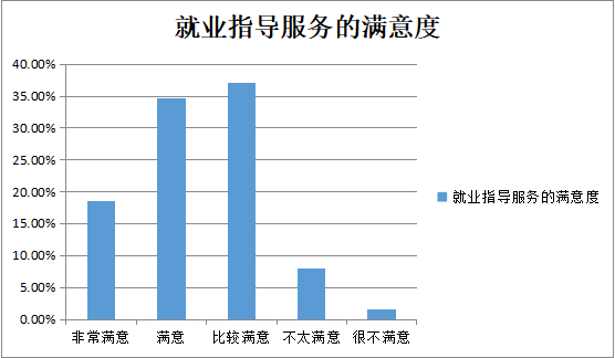 毕业生对公司就业指导服务的满意度:非常满意:18.55%;满意:34.68%;比较满意:37.10%,不太满意:8.06%,很不满意:1.61%;