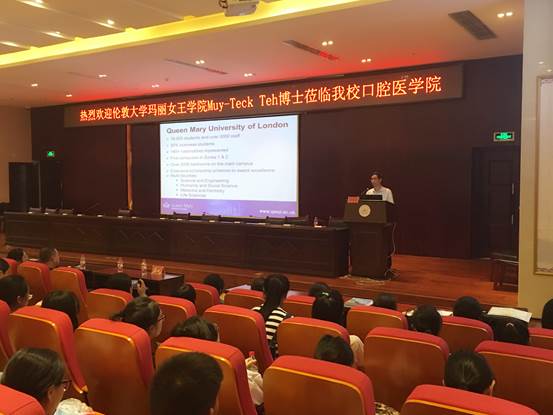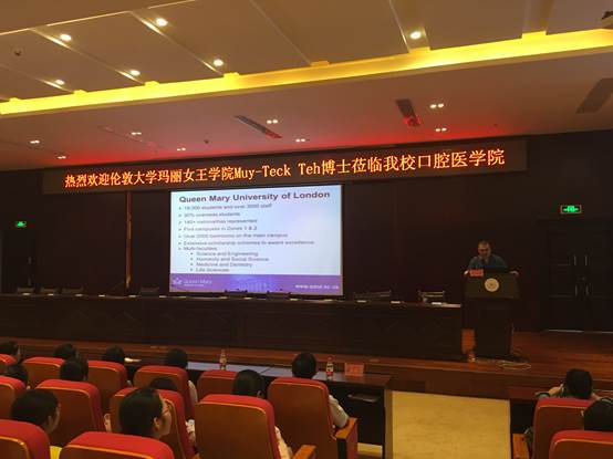 为促进williamhill的对外交流合作,公司邀请伦敦大学玛丽女王公司Muy-Teck Teh博士为本科生开展讲座。讲座于2016年9月5日下午5点在南校区道德讲堂举行,口腔医公司党委副书记唐正龙教授主持,2013级至2016级所有本科生均参与了此次讲座,还有研究生特意从北校区赶来聆听,全场座无虚席。