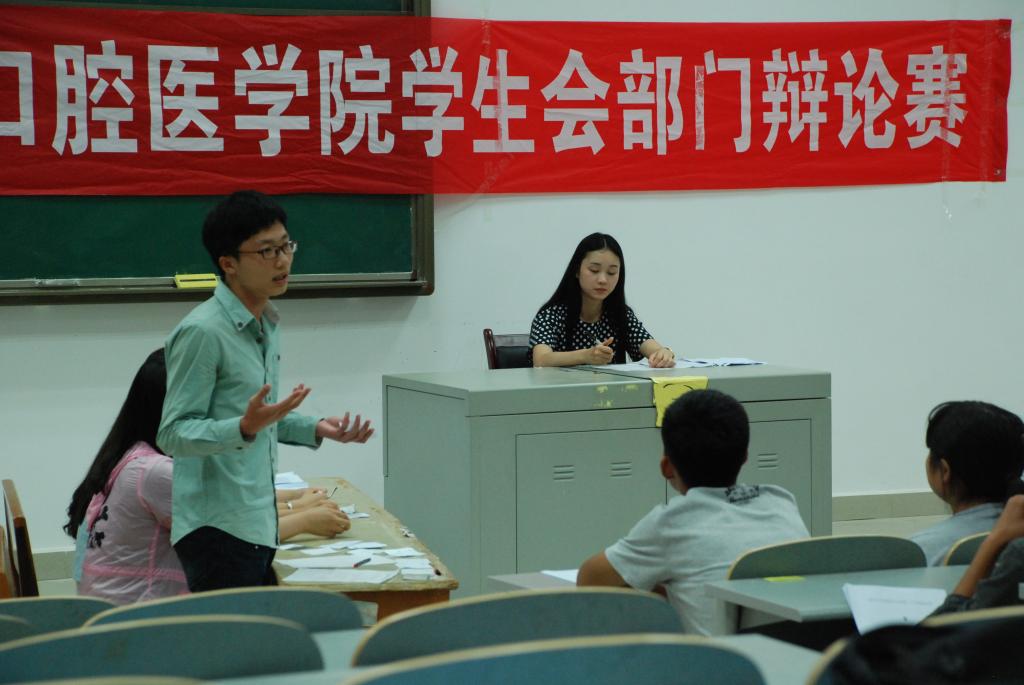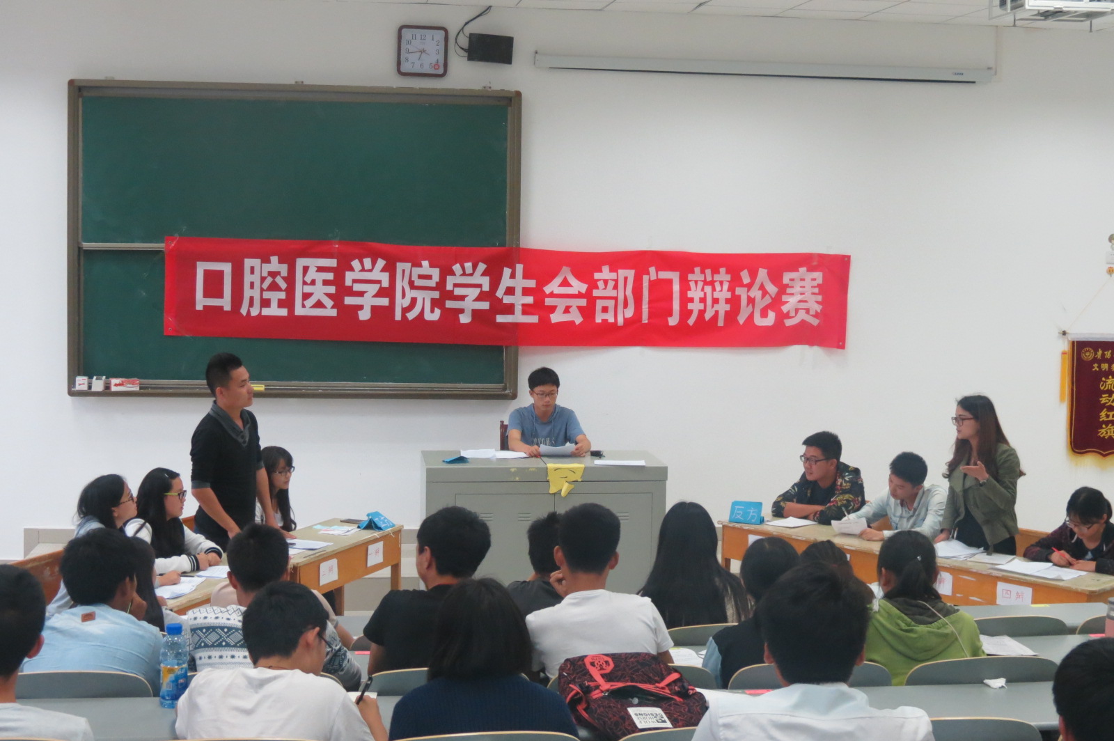 为了提高老员工思辨能力和协作能力,williamhill员工会策划了一场趣味辩论赛,比赛分为初赛、复赛和决赛。2015年6月3日晚,在花溪校区4504教室进行决赛,由编辑部和文体部争夺冠军,辩题为“人类将毁于科技吗?”。辅导员张婷老师作为评委之一,也出席了当晚的比赛。