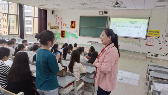 李雪萍以“让生命绽放不一样的光彩”为题,带来了一场别出心裁的心理讲座。恰逢六一儿童节,李雪萍与同学们趣味互动,邀请不一样颜色衣服、不一样穿搭的同学分享自己眼中的六一儿童节,进而引出每个人的成长经历都存在很大不同。李雪萍还分享了生活中的点滴事例,生动地展示了对于相同的事物,每个人都有不同的解读,认知不一样则感受不一样,提醒同学们要善于发现每件事积极正向的一面,做到面对困难不“黯然”要“欣然”。李雪萍强调,有的人少年得志,有的人大器晚成,每个人的高光时刻都不一样,同学们要心怀理想,脚踏实地,不断提升自我,走好脚下路,奋进新征程。