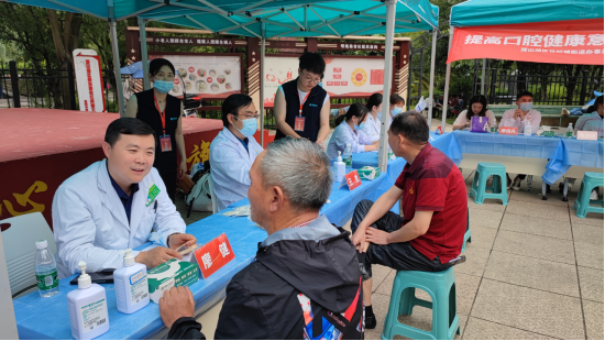 随后,廖健一行与贵阳德韩口腔医公司党支部在观山湖区世纪城明珠广场开展联合义诊活动,此次义诊活动得到了观山湖区世纪城街道办事处和世纪城社区明珠助老社的协助支持。活动中,义诊团队为社区居民进行血压测量、口腔义诊、口腔卫生科普,耐心解答他们的疑问,并发放免费小礼品。