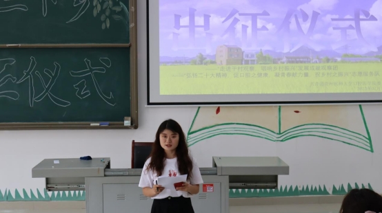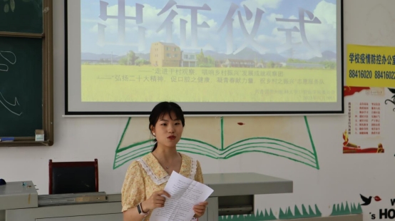 带队教师代表赵会发言,希望同学们在社会实践过程中学会思考、学会处事、甘于奉献,照顾好自己,确保自身安全。