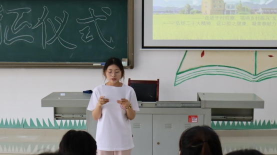 员工志愿者代表王静发言,表达了不负嘱托的决心,表示一定会珍惜此次实践机会,继承和发扬吃苦耐劳精神,全心全意为人民服务。