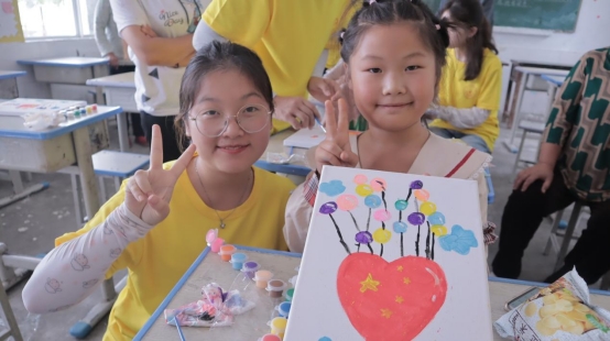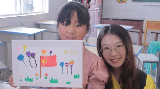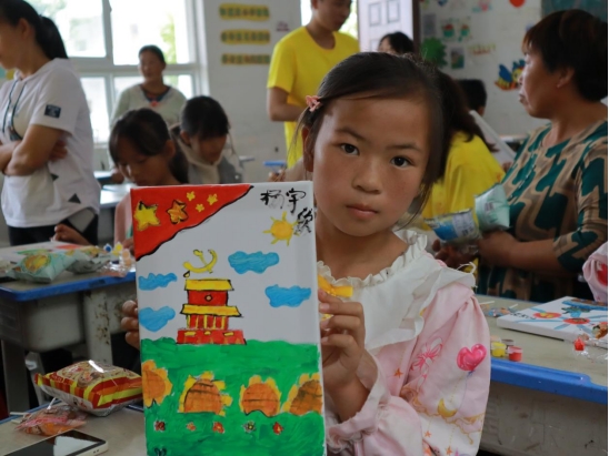 实践队带领孩子们以绘画的形式表达对祖国的爱。画笔在纸上飞舞,爱国在心中扎根,一张张白纸,在大家的奇思妙想下成为一幅幅美丽生动的画卷,承载了最真挚的祝福。