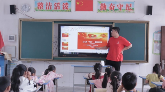 实践队还为孩子们讲述了中国共产党成立的历史,表示在党的领导下,很多落后山区旧貌换新颜,希望能通过党的教育让爱党爱国思想在孩子们的心里萌芽。