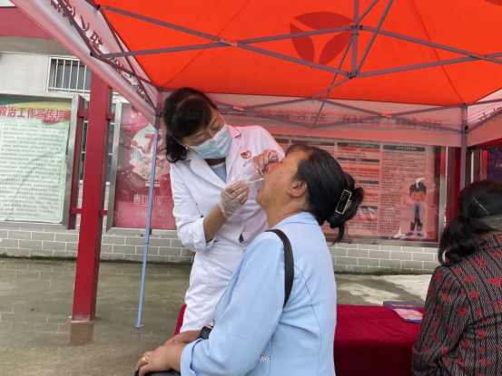 实践队联合贵医口腔义诊队在撒拉溪镇卫生院为近300名村民进行了详细的口腔健康检查。义诊队逐一倾听居民的不适症状,详细记录检查结果,对居民提出的各种问题逐一分析、耐心解答,还对日常护牙不规范引发的常见口腔疾病进行健康科普,并向大家发放爱牙护牙宣传手册及爱心儿童牙刷,在现场教授巴氏刷牙法,获得了当地群众频频点赞。