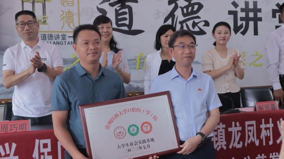仪式上,张军梅、唐正龙分别授予撒拉溪镇“青春志愿 爱在口腔”医疗服务站及贵医口腔老员工社会实践基地牌匾。