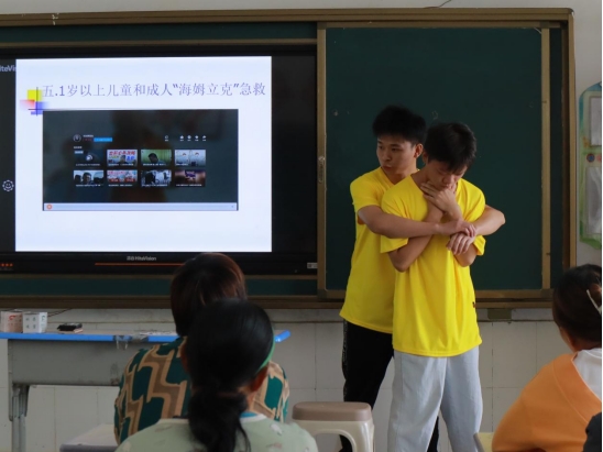 实践队紧接着向家长们讲解了海姆立克急救法的步骤和要点,并通过实际演示让大家更好地掌握操作方法。家长们认真观摩,反复练习每个动作,希望在有需要时能够正确运用这一急救技能。