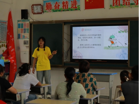 除了海姆立克急救法,队员们还向家长们科普了鼻出血、中暑、晒伤、被蜂蛰咬、烫伤、骨折后等基础急救知识,并演示了相关步骤,让其更好地掌握技巧。