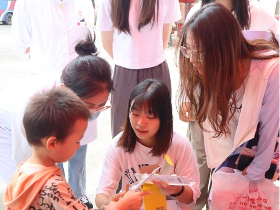 活动中,实践队首先为家长和孩子进行口腔健康科普,讲解了牙齿的生命过程及常见的口腔疾病,并教他们如何正确刷牙和怎样对待龋齿、乳牙掉落;帮助大家了解牙齿健康常识,知晓自身的口腔健康状况,进一步增强口腔保健意识。