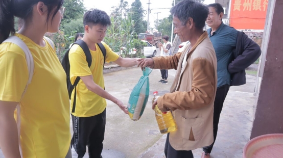 实践队带着米和油等物资走访慰问了当地困难家庭。一老人激动地向队员们说:“在国家一系列脱贫政策的支持下,我家的条件越来越好了,生活也越来越有盼头了。”