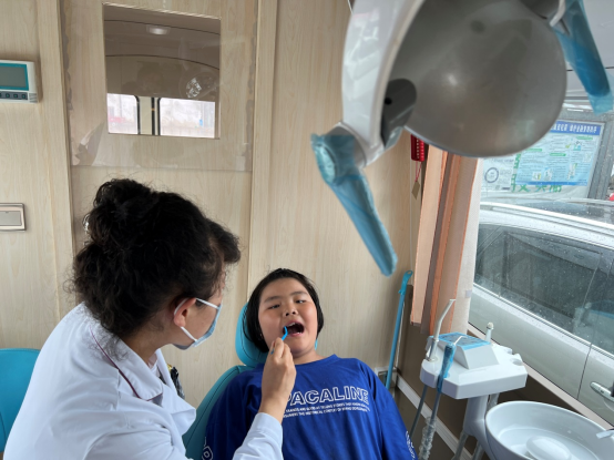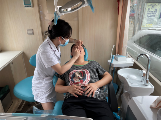口腔正畸科主任医师黎敏、主治医师冯安琪以及口腔颌面外科主治医师蒋韵娴为当地群众进行口腔知识科普宣教,并利用口腔诊疗车现场进行专业诊疗,及时发现群众的口腔疾病问题,提升了医师及群众的检查体验,体现了口腔医(学)院的专业和实力。与此同时,研究生党支部及本科生二支部同学们走进当地群众家里,向小朋友们做正确刷牙方式等口腔健康宣教。