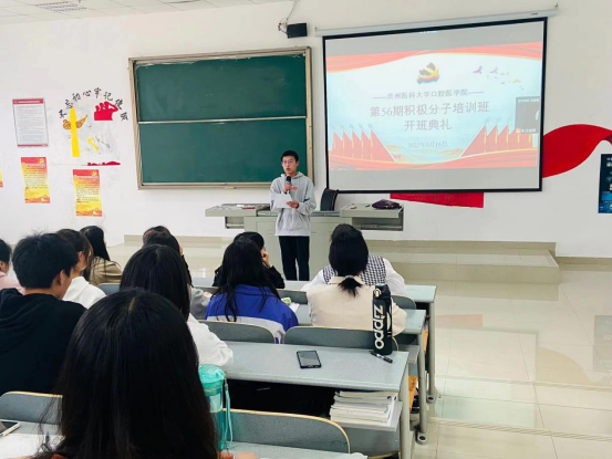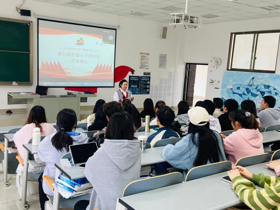 开班仪式在庄严的国歌声中拉开序幕。何雨羲致辞,对本次参加培训的积极分子们提出了要求,首先是要提高思想认识,深刻领会开展入党积极分子培训班的重要意义;其次是要树立正确的入党动机,充分发挥模范带头作用;最后要端正学习态度,学有所思,学有所获,在最好的年华里发挥奋斗的青春底色。