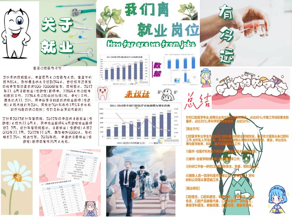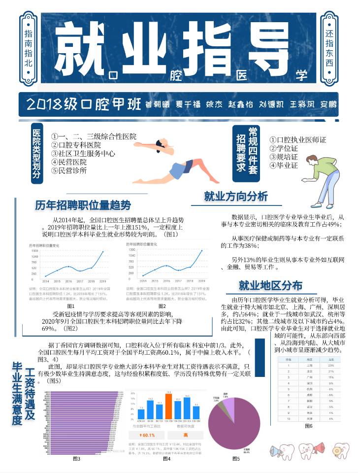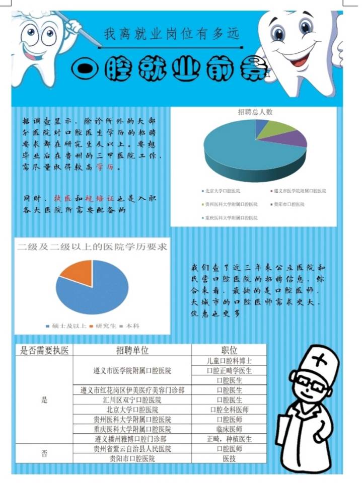 ③饼状图中我们了解到多数口腔医学毕业生毕业后选择本专业就业,证明同学的专业认同度较高。