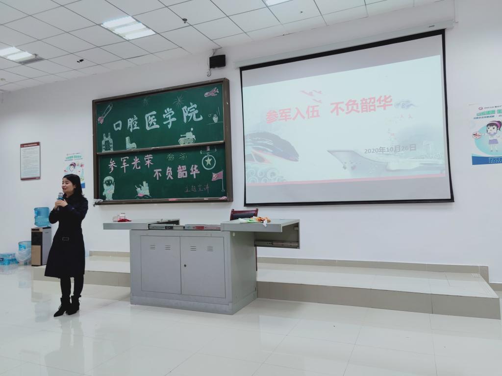 为鼓励员工携笔从戎,提高员工服兵役的责任感与保家卫国的意识,williamhill于10月26日在南校区九思楼4406教室举办了“参军光荣,不负韶华”主题宣讲活动。出席本次活动的有williamhill员工管理科负责人张婷、2018级辅导员赵会、2020级辅导员汪继蓉、2018级退伍员工王荣平和向金虎以及150余名员工参加了此次活动。