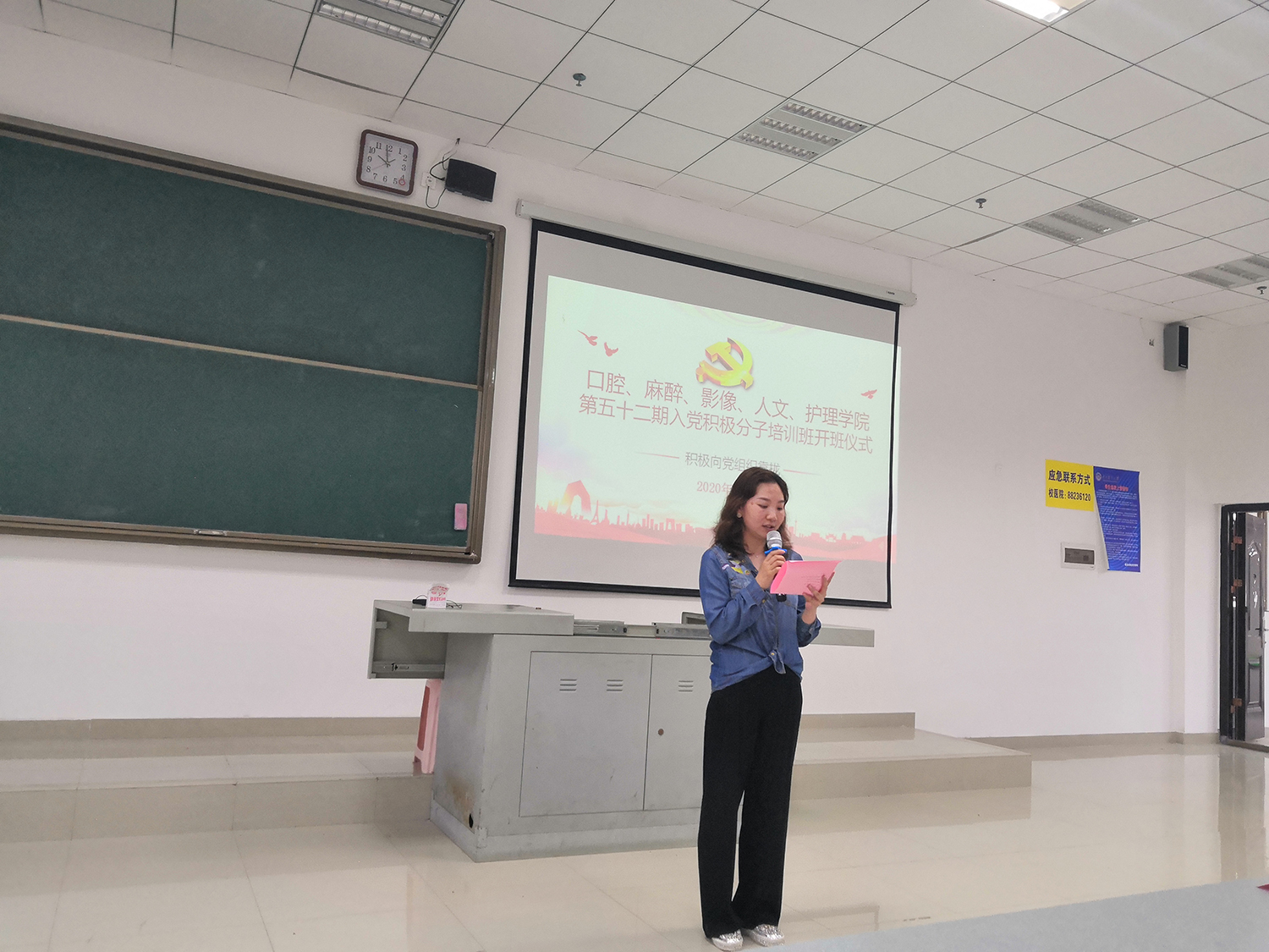 班主任胡睿向参加培训班的积极分子介绍了课程安排及上课纪律,要求同学们时刻守纪,认真学习,将培训班的知识学好并身体力行,希望同学们主动发挥“共产党员”先进性,努力做一个无愧于党、无愧于时代、无愧于人民的“后备军”!
