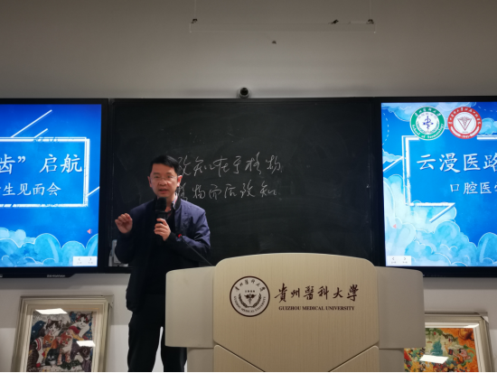 新生代表成佳峻表达了对口腔医学的热爱及对未来的憧憬,明确了“崇德修身、学以致用、开拓创新”的目标,并代表全体新生宣誓:“今天,我们是贵医人;明天,我们是人民健康的守护人。今天,我以贵医为荣;明天,贵医以我为傲!”