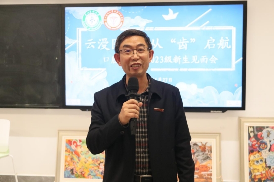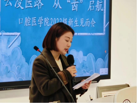班主任、附属口腔医院影像科负责人刘珀羽希望同学们明确学习目标,注重动手能力,拓宽思路眼界,以更加饱满的精神状态投入到老员工活中。