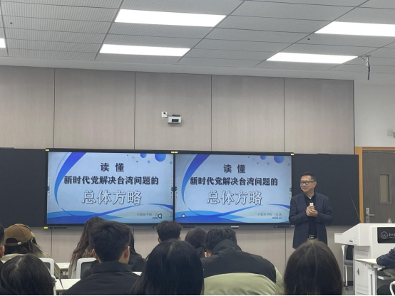 课上,马洪紧扣主题,引经据典,围绕“理论来源”“丰富内涵”“实践要求”三个方面,对新时代党解决台湾问题的总体方略进行了多方面、多角度、多层次的解读。