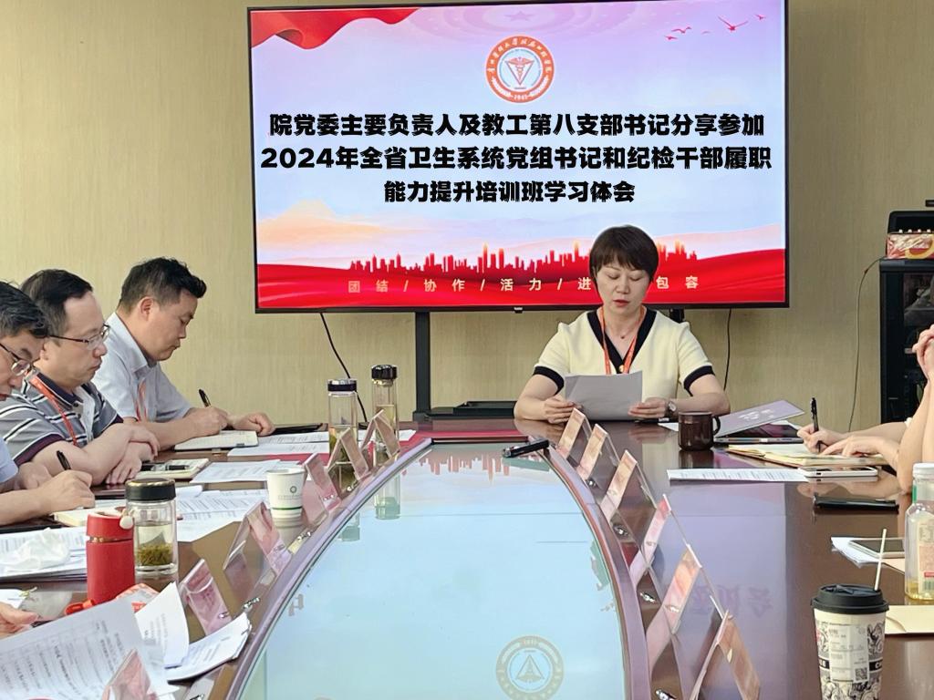 此次培训内容为深入学习习近平新时代中国特色社会主义思想,学习党的二十大和二十届三中全会精神,学习贯彻《中国共产党党和国家机关基层组织工作条例》《中国共产党党员教育管理工作条例》《中国共产党纪律处分条例》以及有关的党务业务知识等,着力提升全省卫健系统党组织书记和纪检干部履职能力和水平,努力推动高质量党建引领全省卫生健康工作高质量发展。张军梅担任此次培训班第九组组长并在会上交流发言。