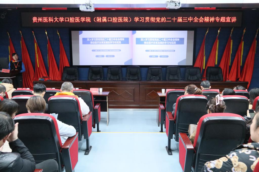 宣讲会上,张军梅以“深入学习贯彻党的二十届三中全会精神,推动医疗改革发展的学习与实践”为主题,围绕党的二十届三中全会精神、深化医药卫生体制改革、口腔医防融合创新实践的上海模式和对公司工作实际的思考与实践四个方面专题宣讲。她指出,要把学习贯彻党的二十届三中全会精神与学习贯彻习近平总书记视察贵州重要讲话精神结合起来,狠抓落实党的创新理论武装,把进一步全面深化改革的战略部署转化为推进中国式现代化的强大力量。