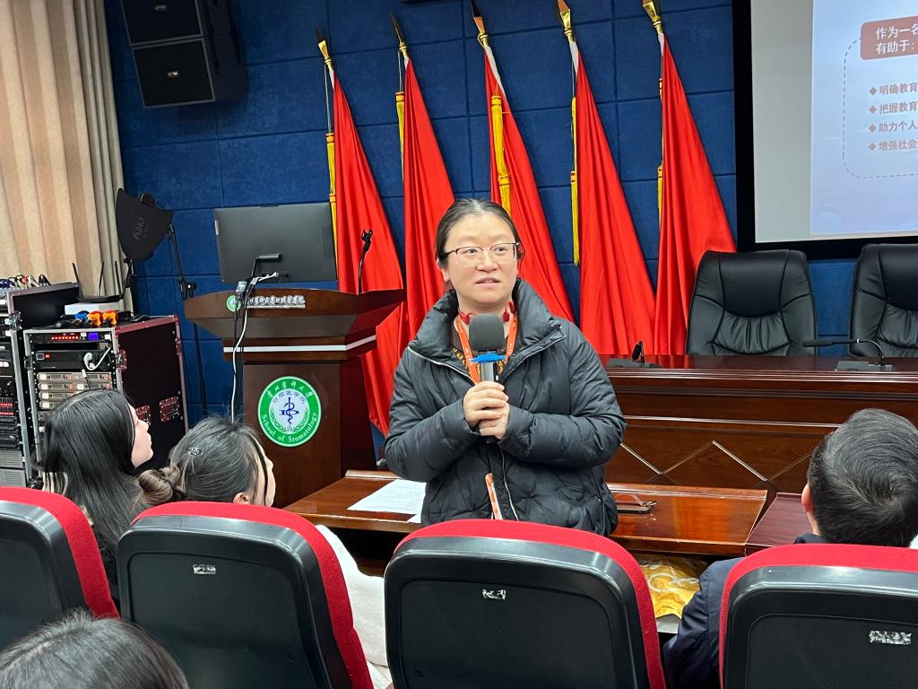 陈培各领学习近平总书记在贵州考察时的重要讲话精神。她指出,全体师生要深刻领会“坚持以高质量发展统揽全局”的核心要义,把习近平总书记关于“在中国式现代化进程中展现贵州新风采”的重要指示转化为实际行动。希望大家立足专业特色,在科研创新与临床实践中践行初心使命,不断提升自身能力,为推进卫生健康事业高质量发展贡献青春力量。