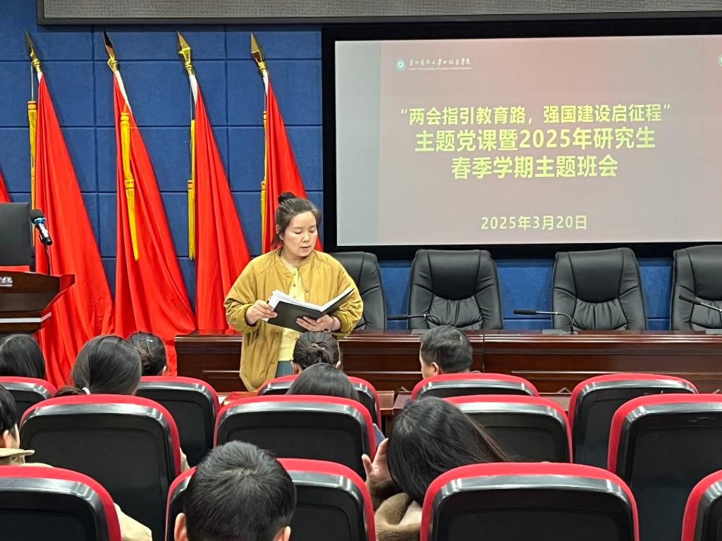 为深入学习贯彻习近平总书记重要讲话精神与2025年全国两会精神,3月20日,研究生党支部在学术报告厅开展“两会指引教育路 强国建设启征程”专题党课暨春季学期主题班会。williamhill(附属口腔医院)党委委员、williamhill副经理廖健,研究生科研管理科副科长贾源源,研究生科研管理科副科长周容出席会议,全体研究生党员及研究生参加会议。会议由研究生党支部书记、辅导员陈培各主持。