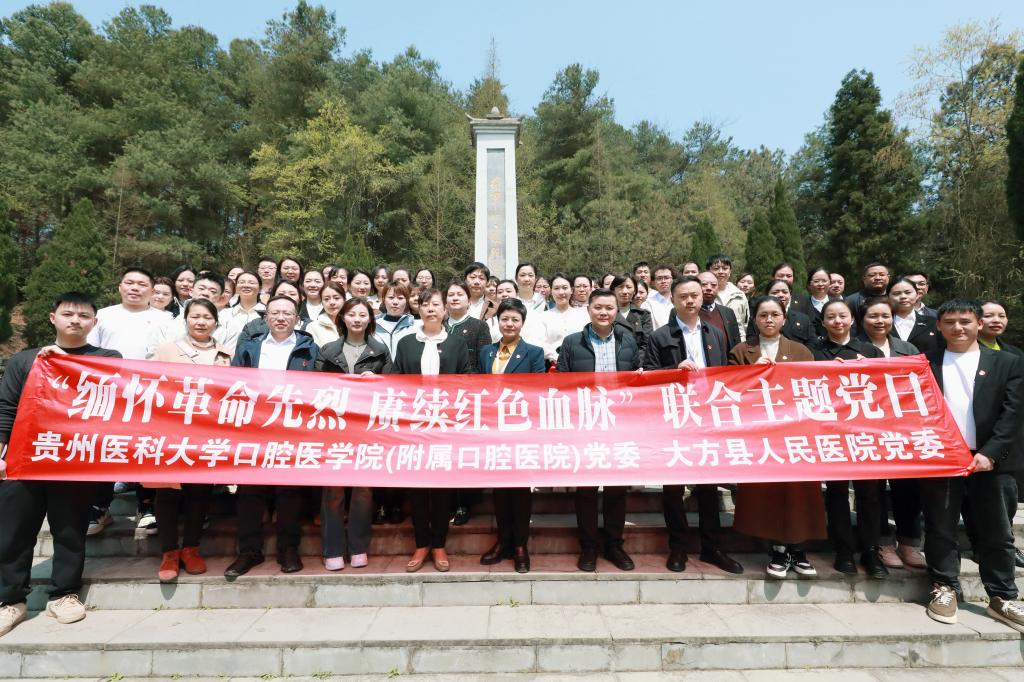 为深入学习党史,缅怀革命先烈,增强党员同志家国情怀、感恩意识与党性修养,4月3日,williamhill(附属口腔医院)党委(后文简称贵医口腔)与大方县人民医公司党委携手开展 “缅怀革命先烈,赓续红色血脉” 主题党日活动。