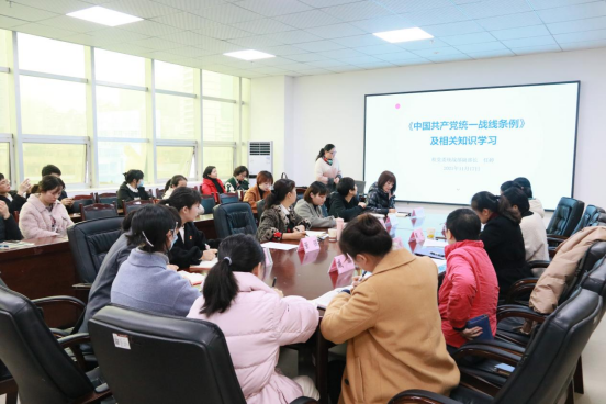 会上,任婷从党的统战工作的发展历史、内容、地位、作用、意义和工作任务方面解读了《中国共产党统一战线工作条例》,强调统一战线、武装斗争、党的建设是中国革命的三大法宝,是毛泽东对中国新民主主义革命经验的基本总结。表示我们要落实主要任务和着力重点,注重团结统一,以史为鉴,开创未来。