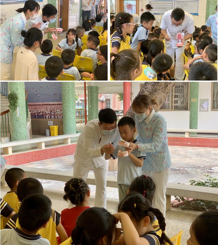 当科普讲座进入下一环节时,由公司深圳分院建立的口腔MDT多学科科普医护团队通过牙模型示范正确的刷牙方法,并指导小朋友进行练习演示。在寓教于乐的氛围中,让孩子们重视口腔卫生,懂得如何有效地保护牙齿。