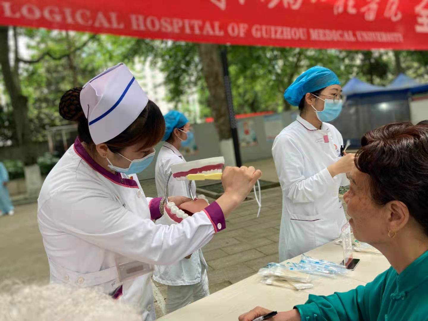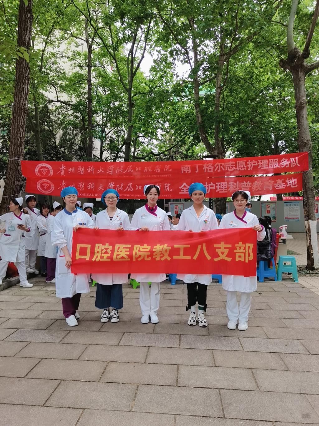 为庆祝中国共产党成立100周年暨2021年“5·12”国际护士节,进一步传承红色革命精神,激励广大医护人员心向党、跟党走,立足岗位作贡献,营造浓厚的社会氛围,献礼建党百年,公司教工党支部于5月11日在医院大楼前广场开展了以“传承红色基因,守护健康口腔”为主题的义诊活动。