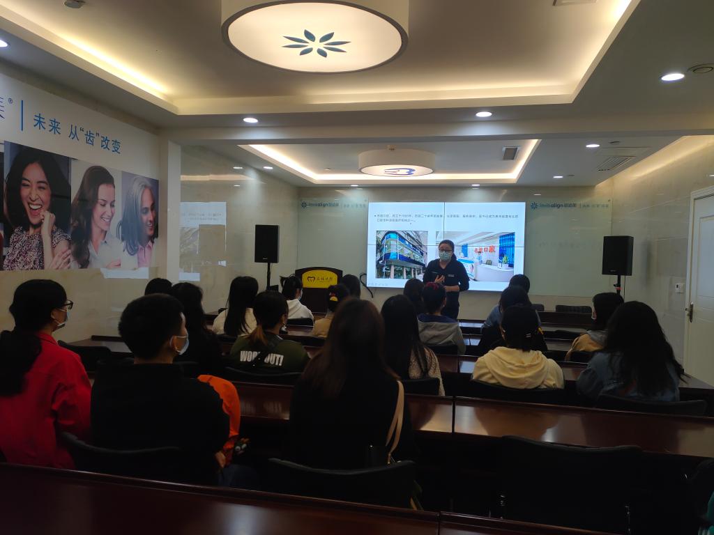 贵阳云岩名谊口腔医院王经理向同学们介绍了名谊口腔医院的发展史、服务理念、诊疗方向以及当前的发展状况,并带领大家参观了医院门诊、个性化儿童诊室、成人诊室以及,在参观Digital center时,一名志愿者同学受邀体验了医院的三维图像分析系统。随后,王经理邀请一名高年资医生与护士长在会议室跟同学们进行了进一步交流,向同学们客观分析了选择公立医院或民营企业的利弊,并分享了个人经历择业时的不安与彷徨,希望大家不忘初心,脚踏实地,学好专业知识与技能,迎接好每一次的挑战与机遇。